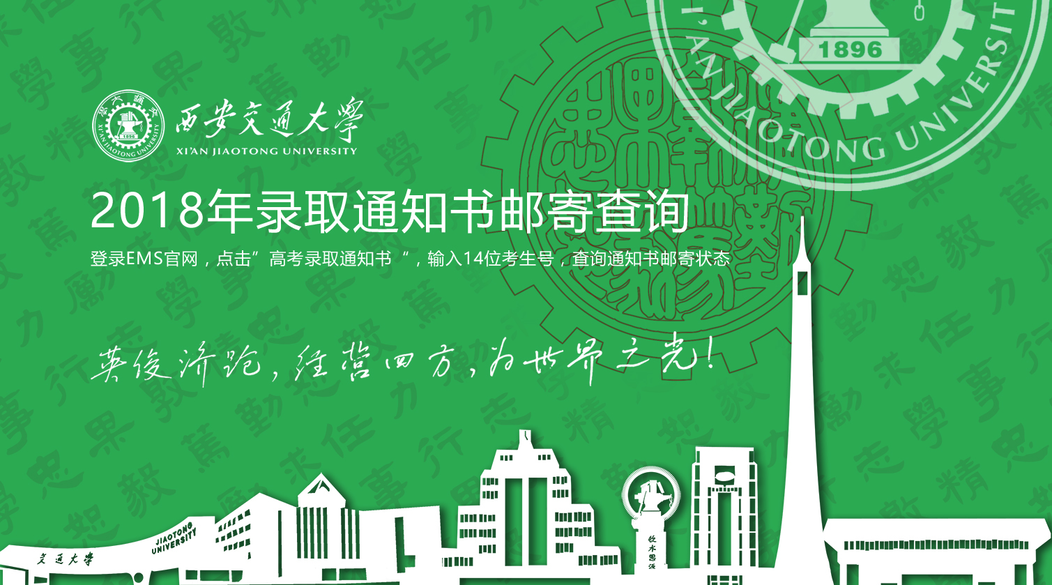 今天,第一批500余份录取通知书已寄出,大家可登录EMS官网(http://www.ems.com.cn/),点击“高考录取通知书”输入14位高考考生号请注意是18开头的考生号,不是准考证号;另,广东考生号为10位),查询录取通知书邮寄状态。