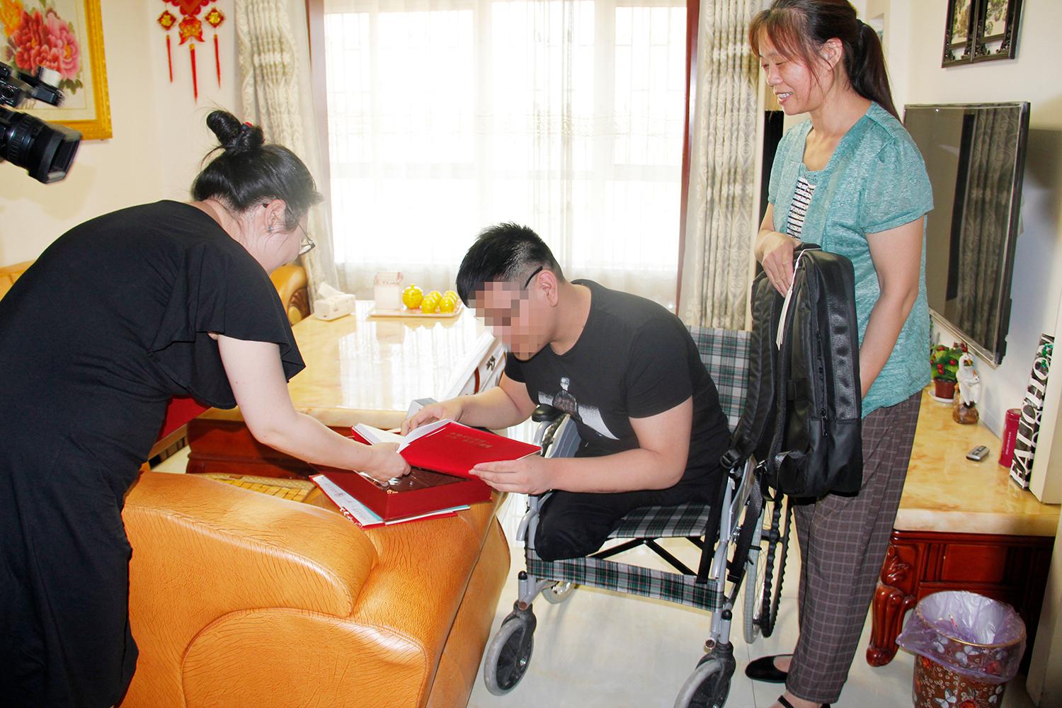 关爱新生,西安交大在路上。7月25日下午,由西安交大招生办主任訾艳阳、学生处副处长王欢带队,招生办、学生处、宣传部等部门一行八人看望了一位特殊的交大新生——小伟。小伟今年以657分的高分被西安交大工科试验班(电类)录取。 阳光帅气的小伟在2岁时因为一次事故,导致身体不便,日常出行需要坐轮椅,生活也离不开父母的照顾。到了入学年龄,由于情况特殊,小伟未能进入小学就读。“但是他特别好学,没有老师教,他就自己在家看书自学”,提到儿子,小伟母亲张女士非常自豪。 心中有梦想,人生就有航向。小伟11岁时,在希望小学的帮助下,终于如愿以偿进入了课堂。由于一直勤奋自学,从没上过学的小伟直接从五年级念起,成了老师同学口中的“传奇人物”。两年后,成绩优异的小伟考上西安中学。同学们特别喜欢这个阳光开朗的“轮椅男孩”,日常上下课除了父母背上背下,同学也主动承担护送小伟上下楼的任务。西安中学不但减免了他的学费,还在高三来临时送给他一份珍贵的礼物。经过全班同学一致同意,学校将小伟所在班级搬至一楼。不需要同学帮助,能够独立进出教室,这对自强自立的小伟来说是最好的关怀。